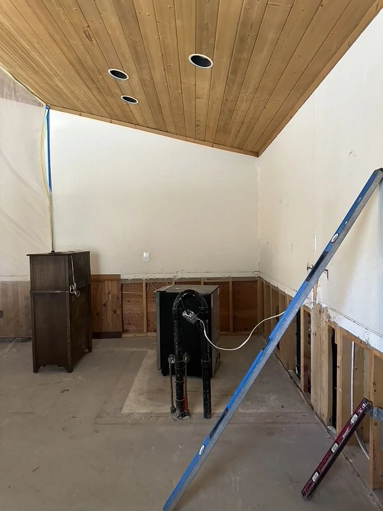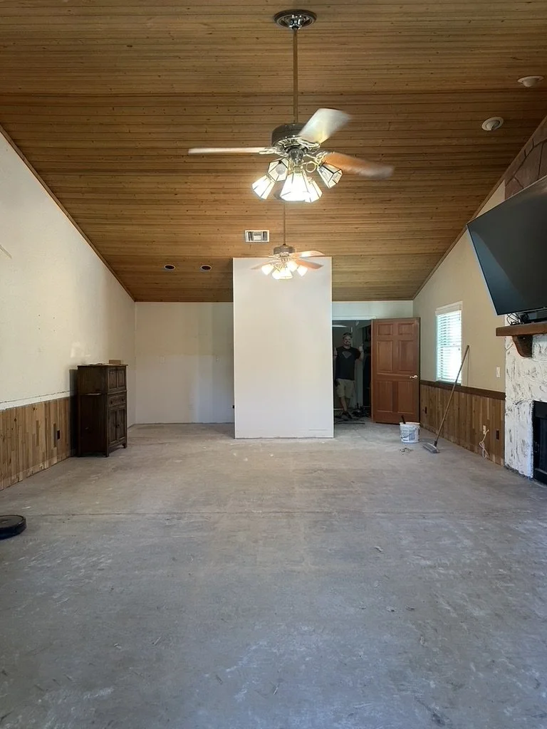 This is one of the first photos we took of the home before we started demo in this area. The pool table is obviously gone, the bar had been demoed to make way for a new and improved bar. To the left of the old bar we are putting the 1/2 bath!